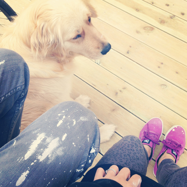 [중간엔 막걸리 한잔과 보리와 놀기. 작업하다 먹는 막걸리는 꿀맛]