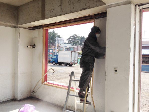 [샤워실 분리 가벽세우는 중]