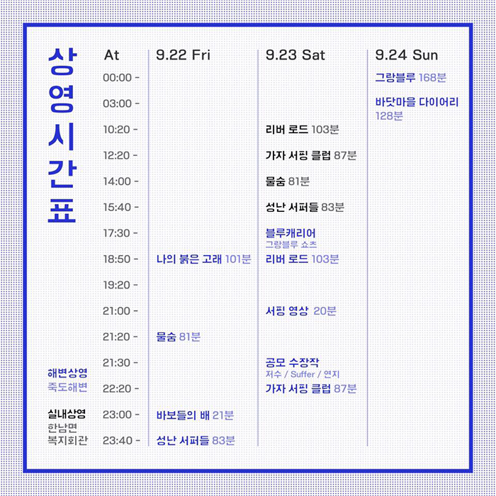 오늘은 9월 22일 fri.-9월24 sun 죽도해변에서 진행되었던 그랑블루 페스티벌에 다녀온 이야기를 하려 합니다.