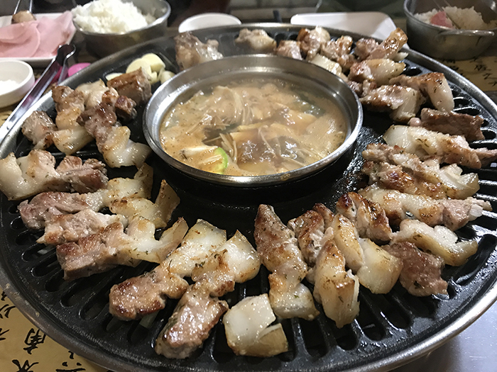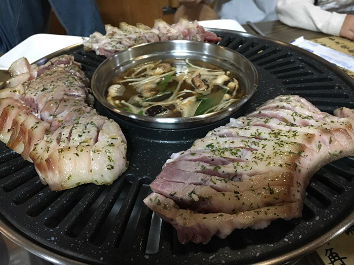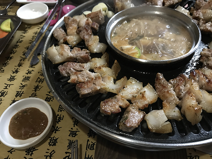 이 집은 돼지고기 집으로 음식을 주문하면 초벌로 한 번 구워서 나오며 이 곳에서 나오는 젓갈에 돼지고기를 찍어먹으면 진짜 맛있어요!