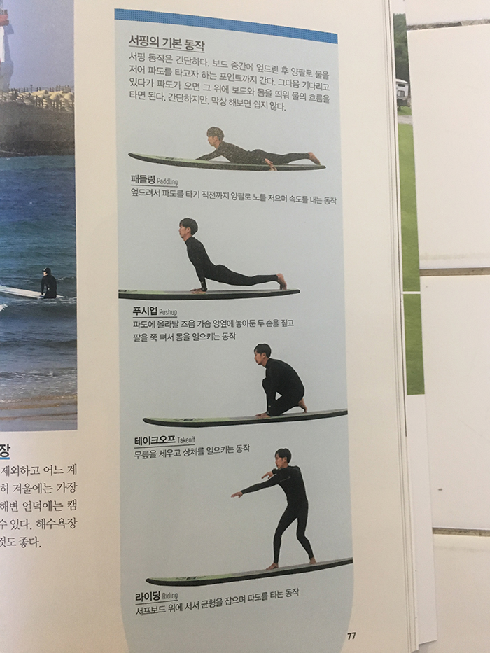 서핑에 대한 간단한 이야기를 읽어 볼 수 있습니다.