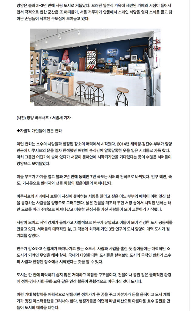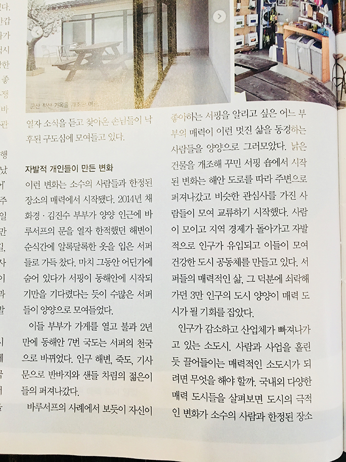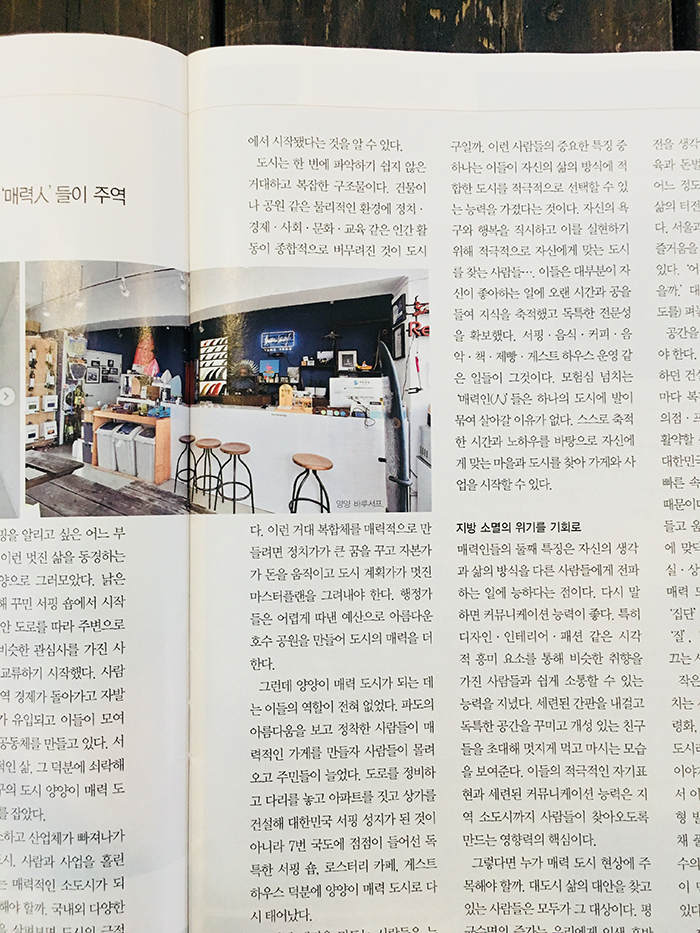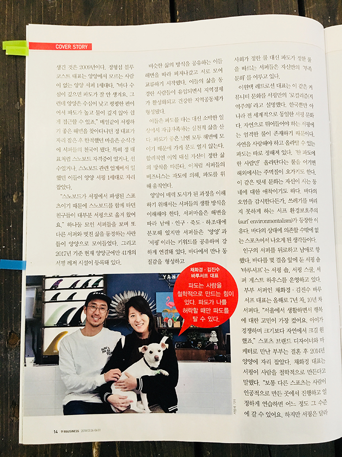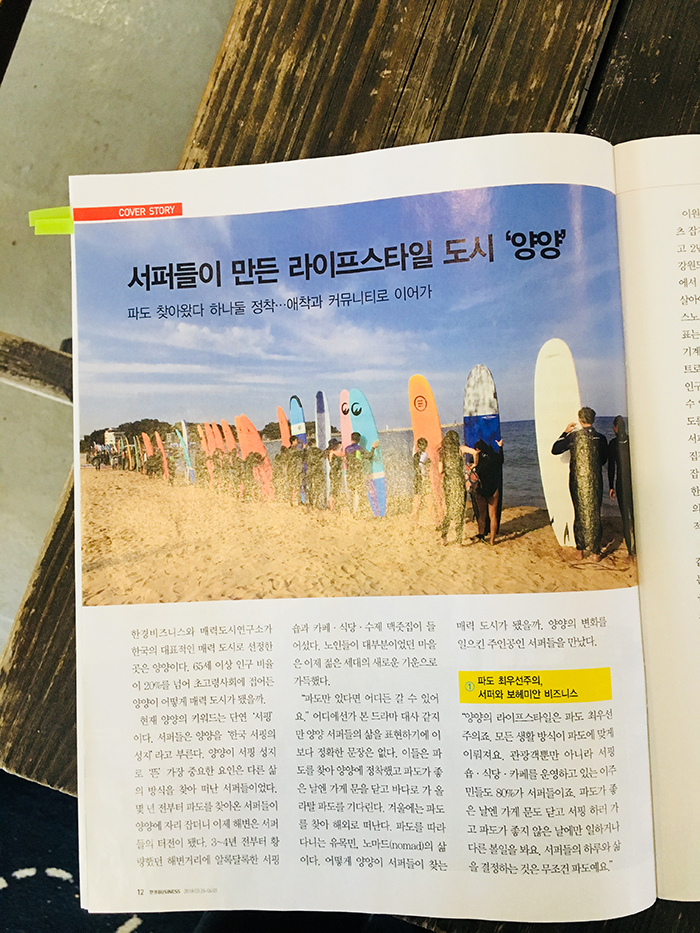 최근 한경BUSINESS 라는 한국경제 매거진 잡지에서 서퍼들이 양양에 들어오면서 발전한 모습을 이야기하면서